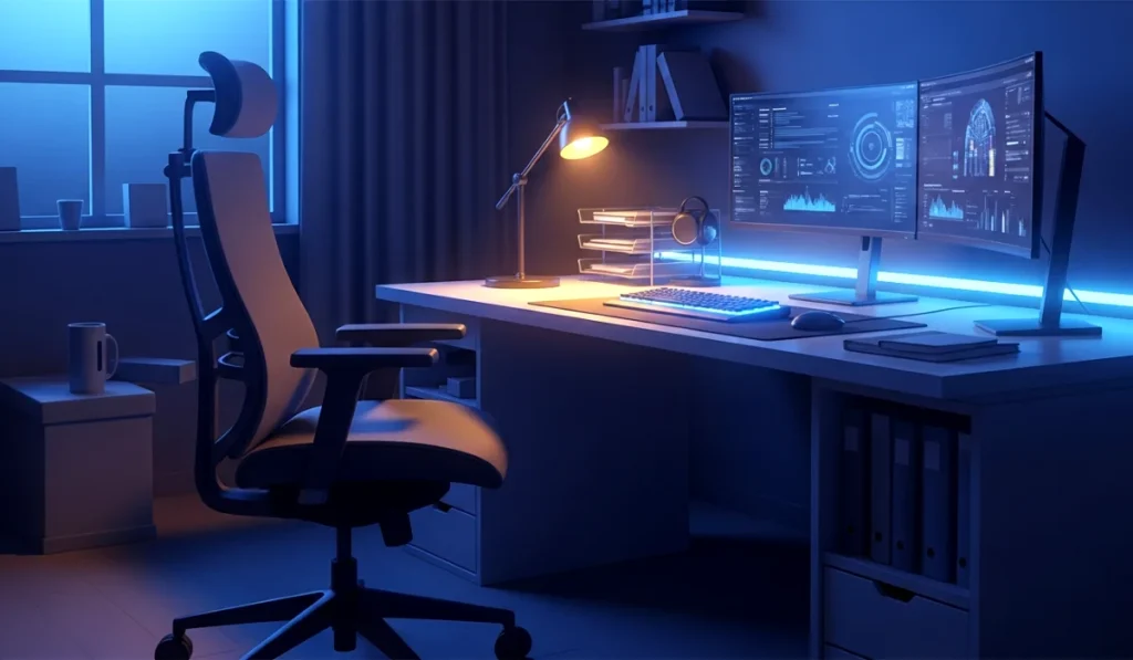 A night worker’s workspace needs more than a simple desk and chair. You need an environment that keeps your mind alert without overstimulating you.