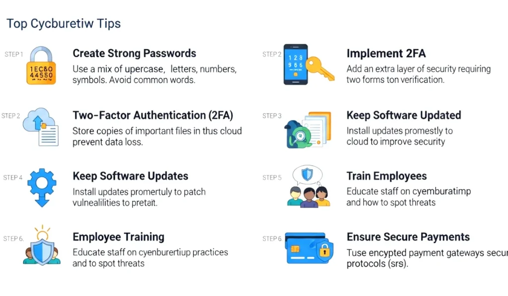 Let us break down each important cybersecurity practice with examples, tips, and real life stories. These are the same strategies big companies use, but we will apply them in a simpler way for small businesses.